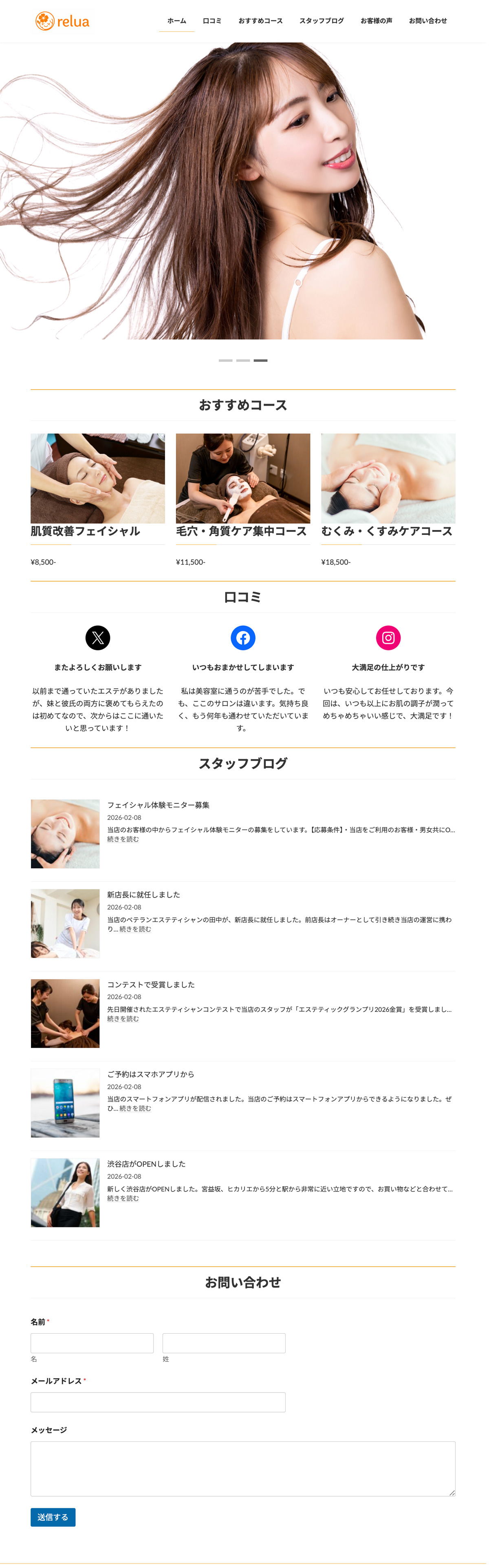 本サイトは、美容室の持つ「やわらかさ」「安心感」「親しみやすさ」を大切に設計しました。 全体を淡いカラーと余白でまとめ、リラックスできる空間の雰囲気をWeb上でも表現しています。 写真を大きく配置することで、サロンの世界観が直感的に伝わる構成にしました。 また、初めて来店される方が不安なく予約まで進めるよう、シンプルで分かりやすい導線設計を意識しています。 無機質になりすぎないよう、文字間や余白を丁寧に調整し、温かみのある印象に仕上げました。